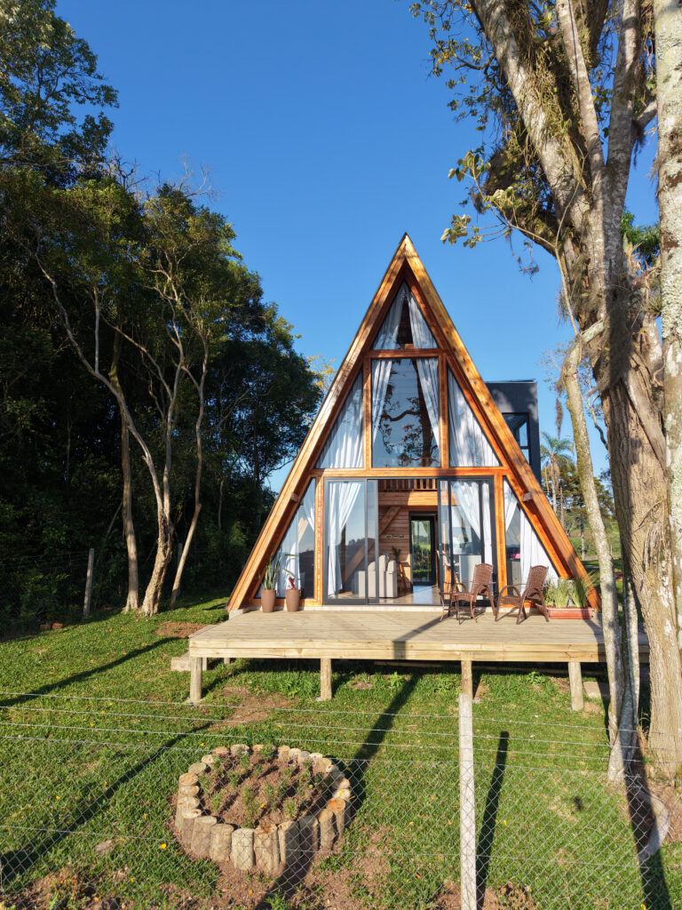 Uma estadia que une conforto, natureza e charme em um cenário inesquecível. Nossa cabana moderna em formato de chalé foi criada para proporcionar momentos únicos.
